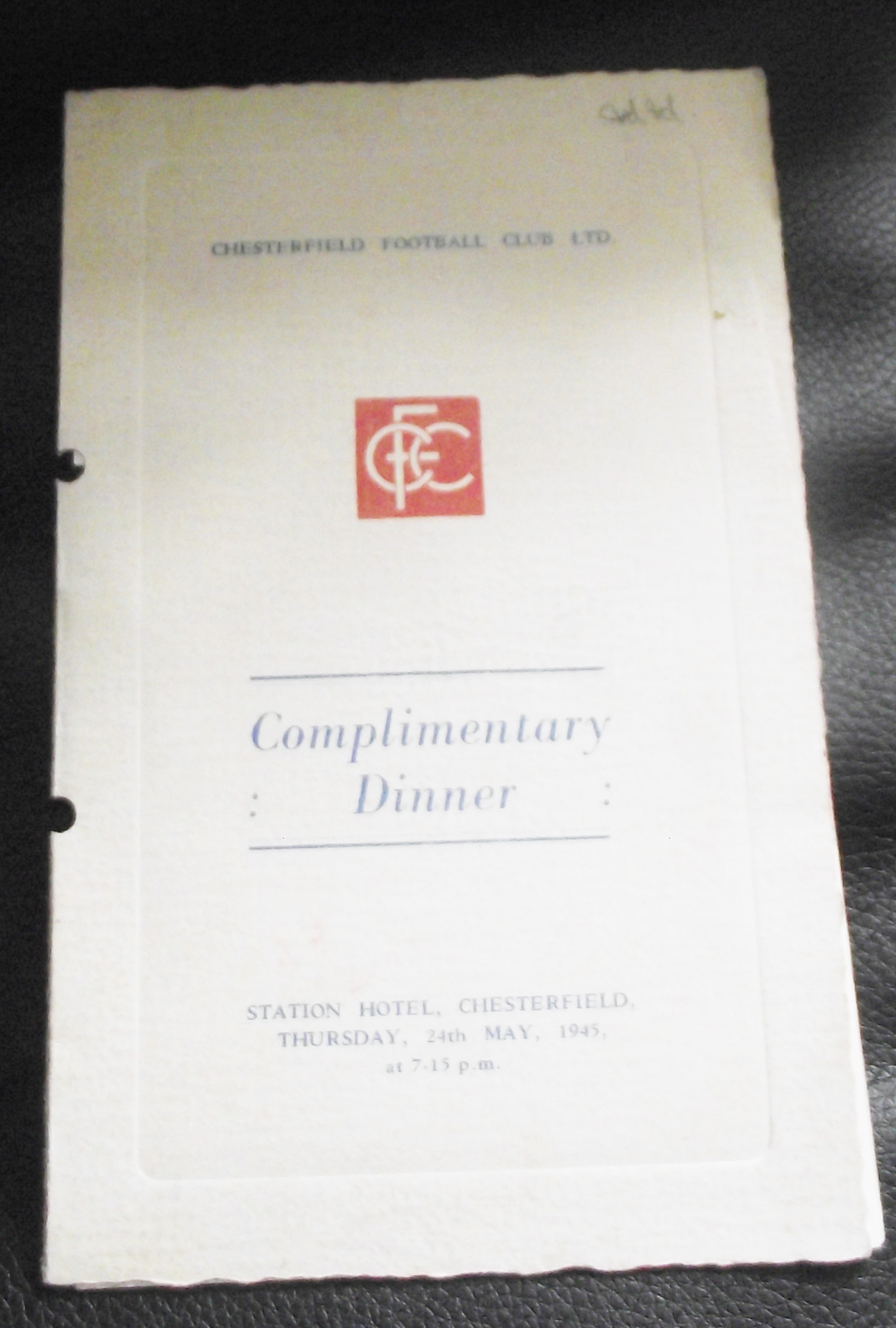 Lot 10: 24th may 1945 chesterfield football club complimentary dinner...