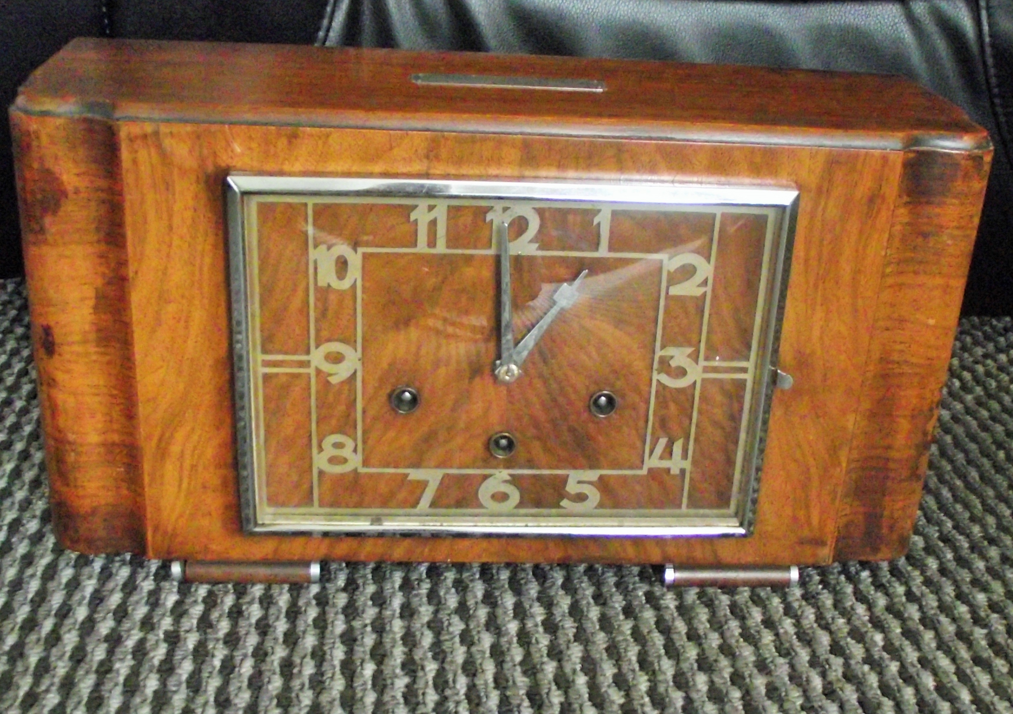 Art deco chiming mantle clock with plaque given by leeds united members and players to George milburn leeds & chesterfield footballer on the day of is marriage