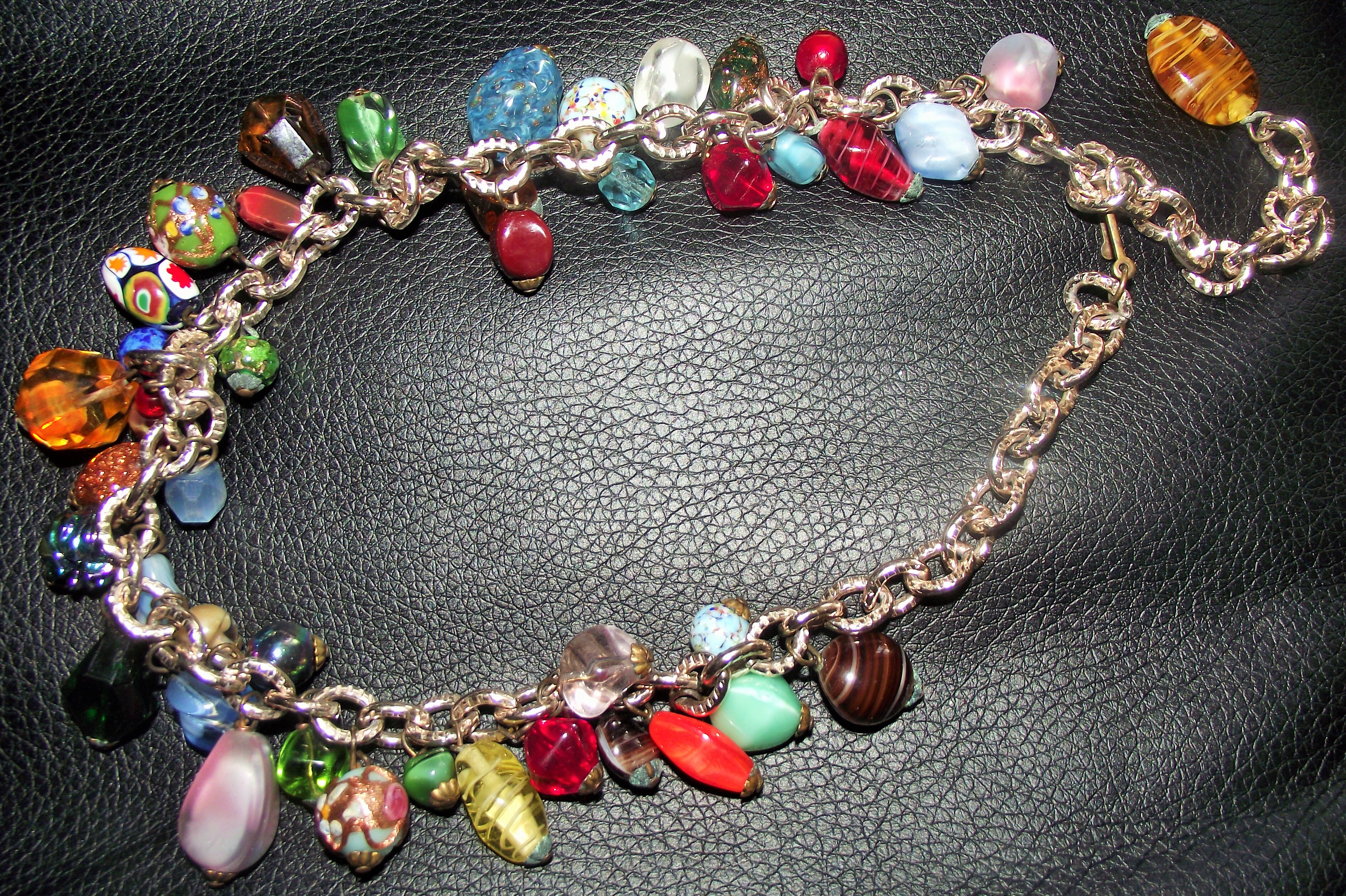 Unusual vintage ladies white metal necklace set with around 40 different coloured and shaped beads