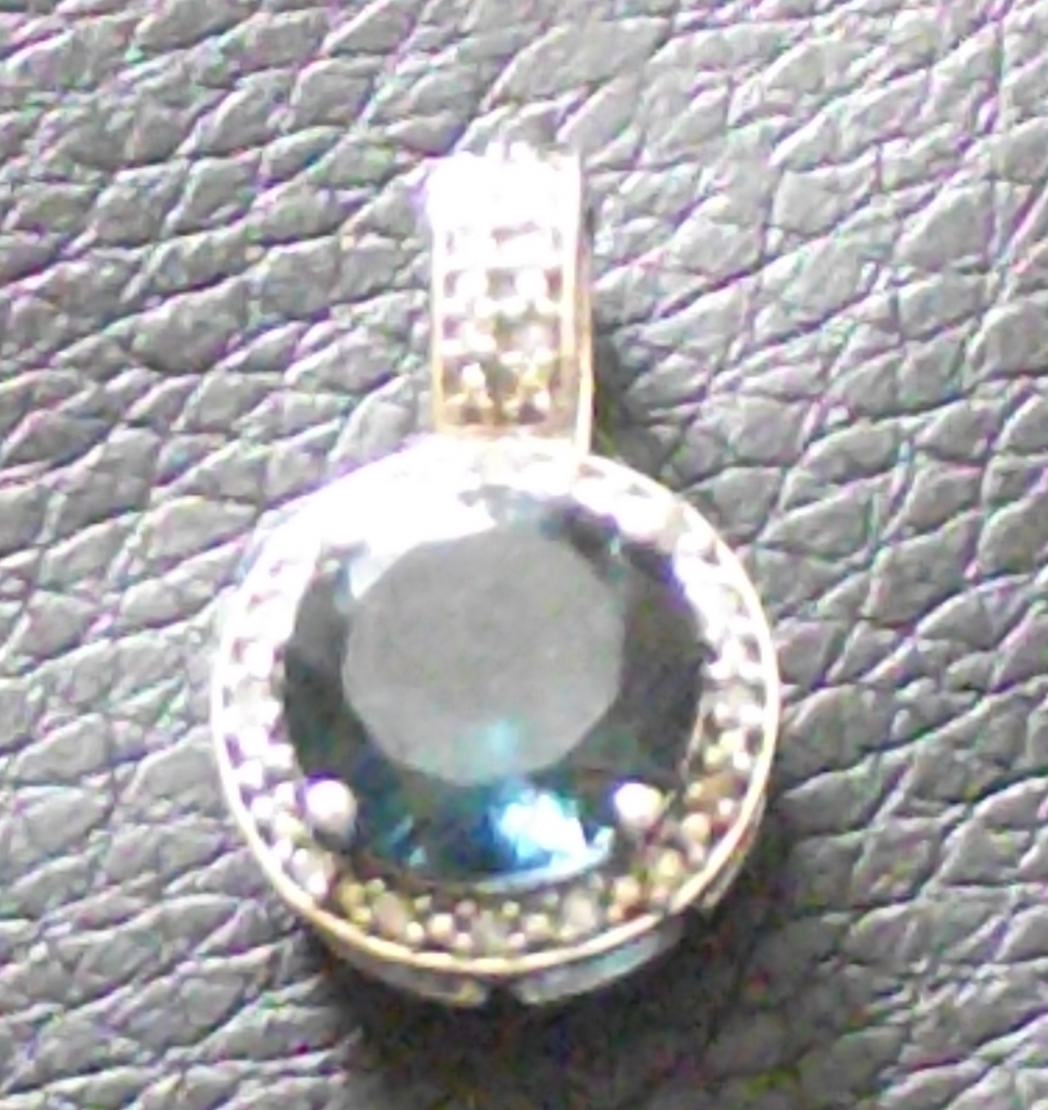 Quality 9ct white gold fully hallmarked blue topaz & Diamond halo style Pendant 2.6g approx