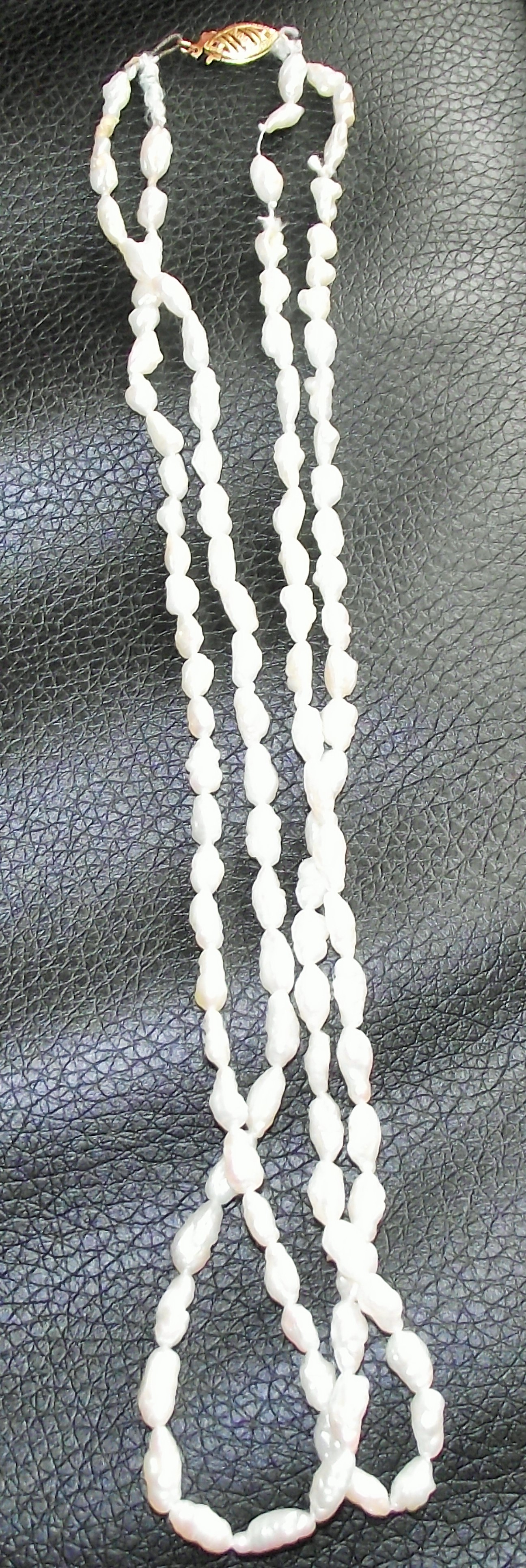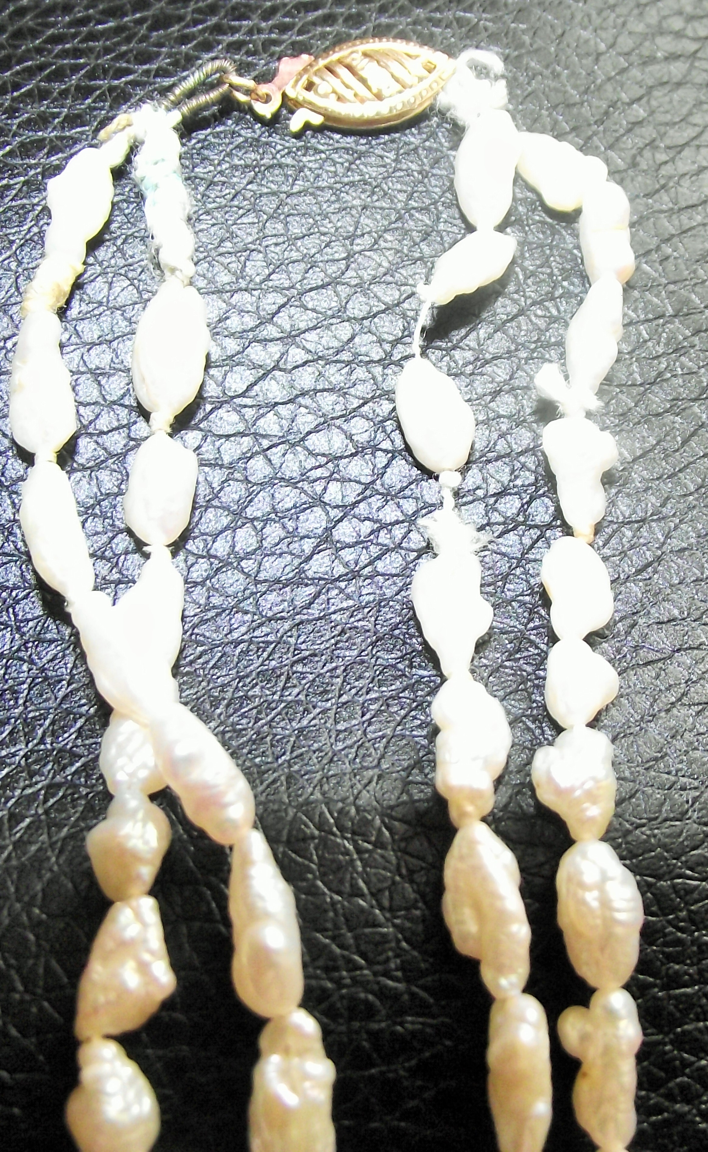8″ choker style 2 strand seed pearl necklace with 14k gold clasp
