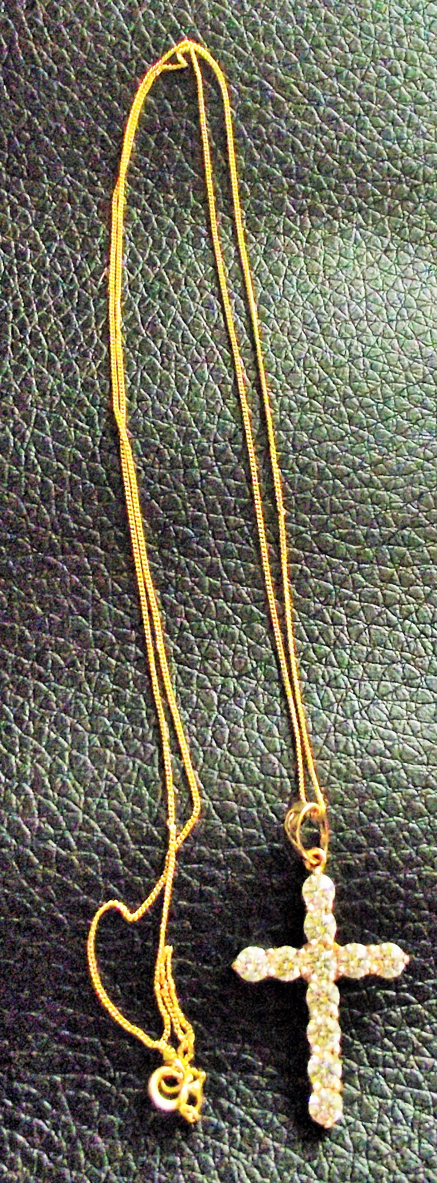Nice quality ladies 14k cross set with CZ stones on a 585(14k) 8.5″chain 1.95g approx