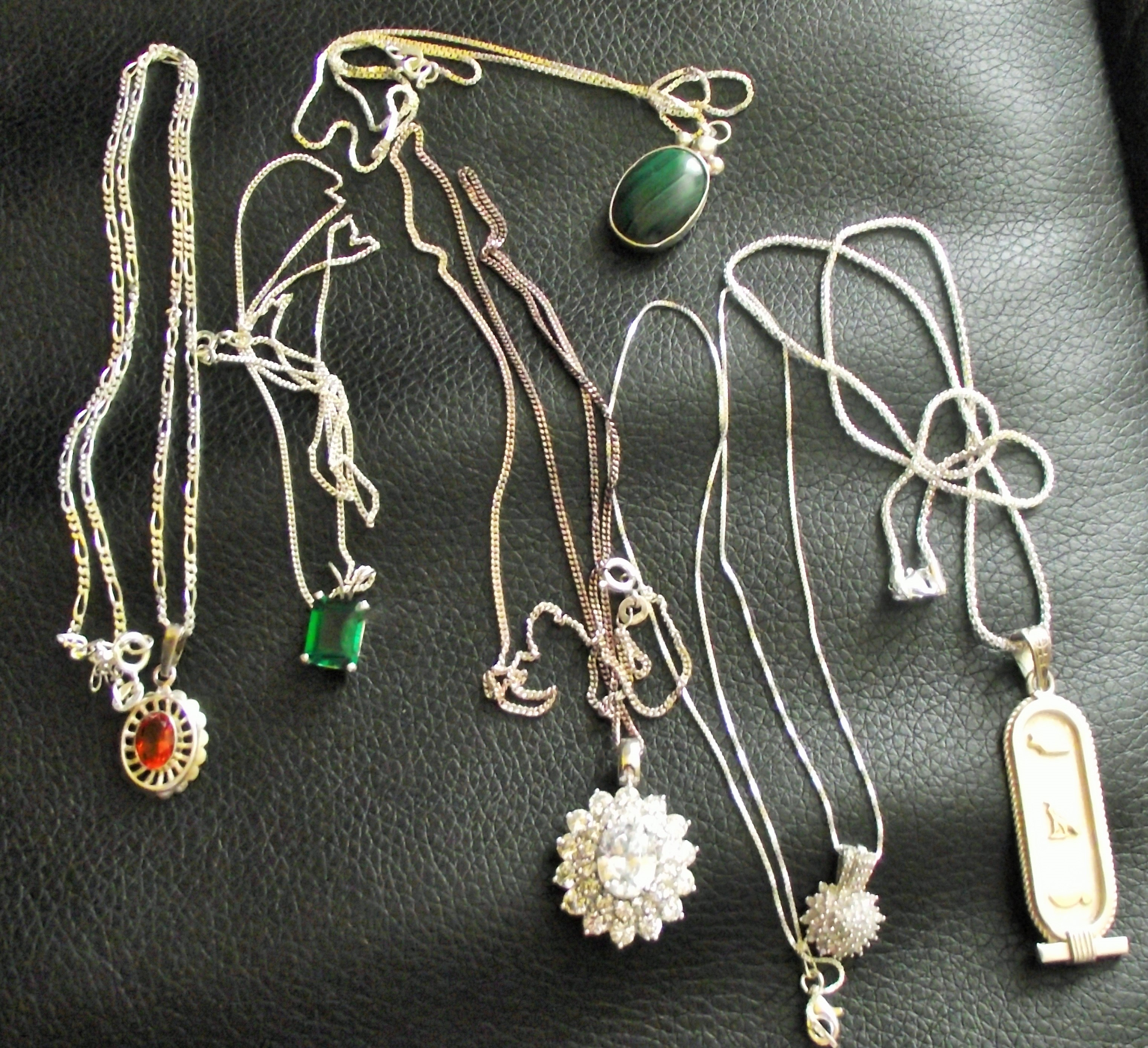 6 x silver pendants on silver chain marked 925 or sterling 37.5g approx
