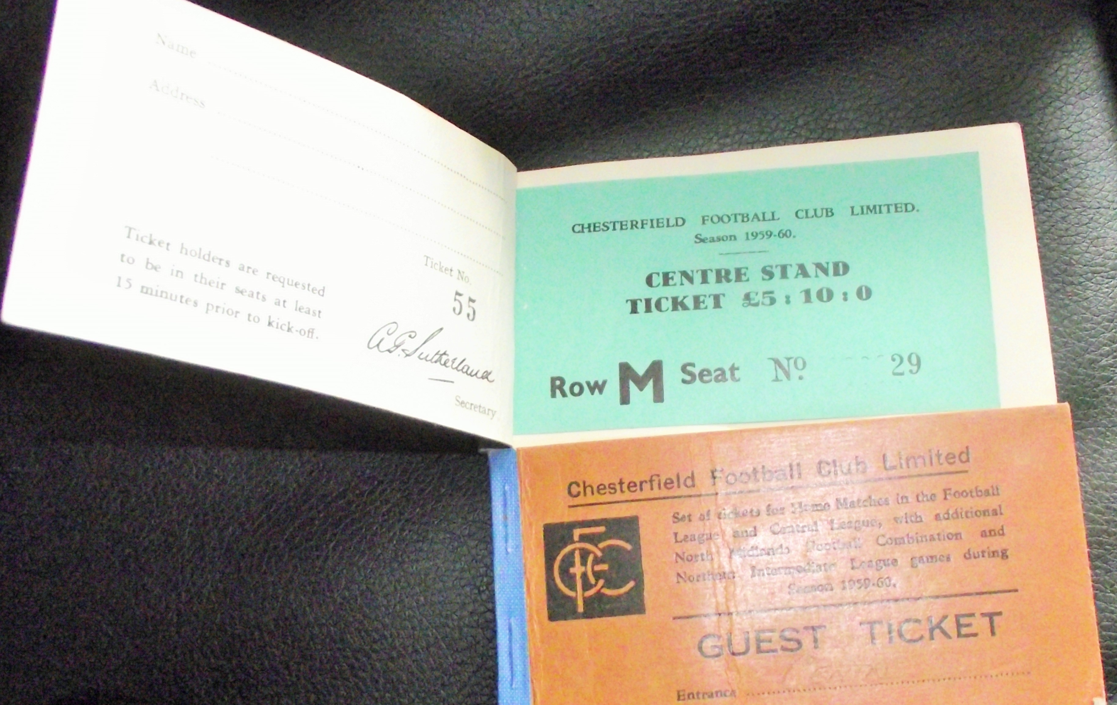 .2x complete Centre stand guest ticket books 1959/60 season chesterfield