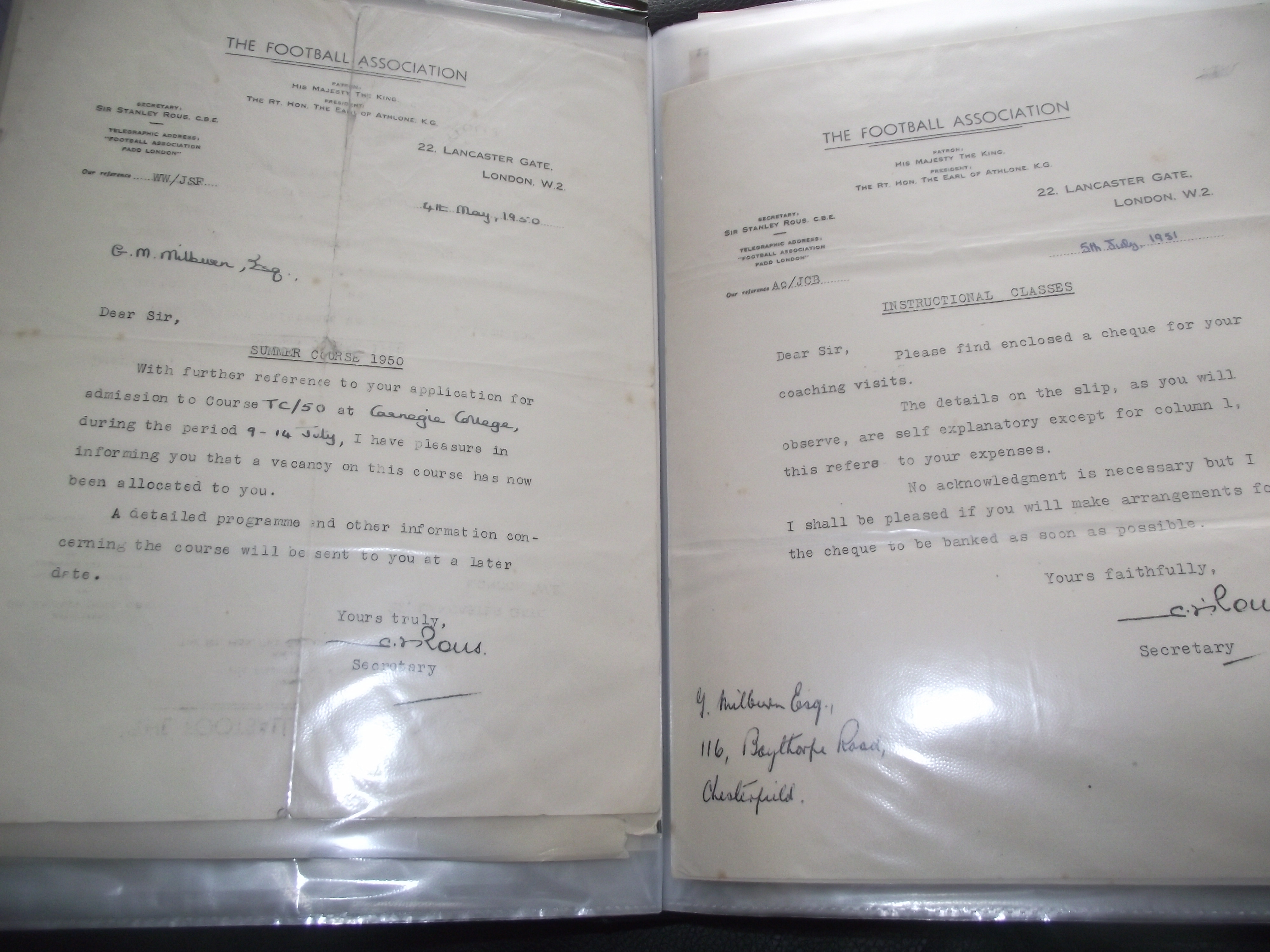 Extensive album of photgraphs , cuttings Football association letters for George Milburn leeds unitede and Chesterfield footballer spanning 30s/50s
