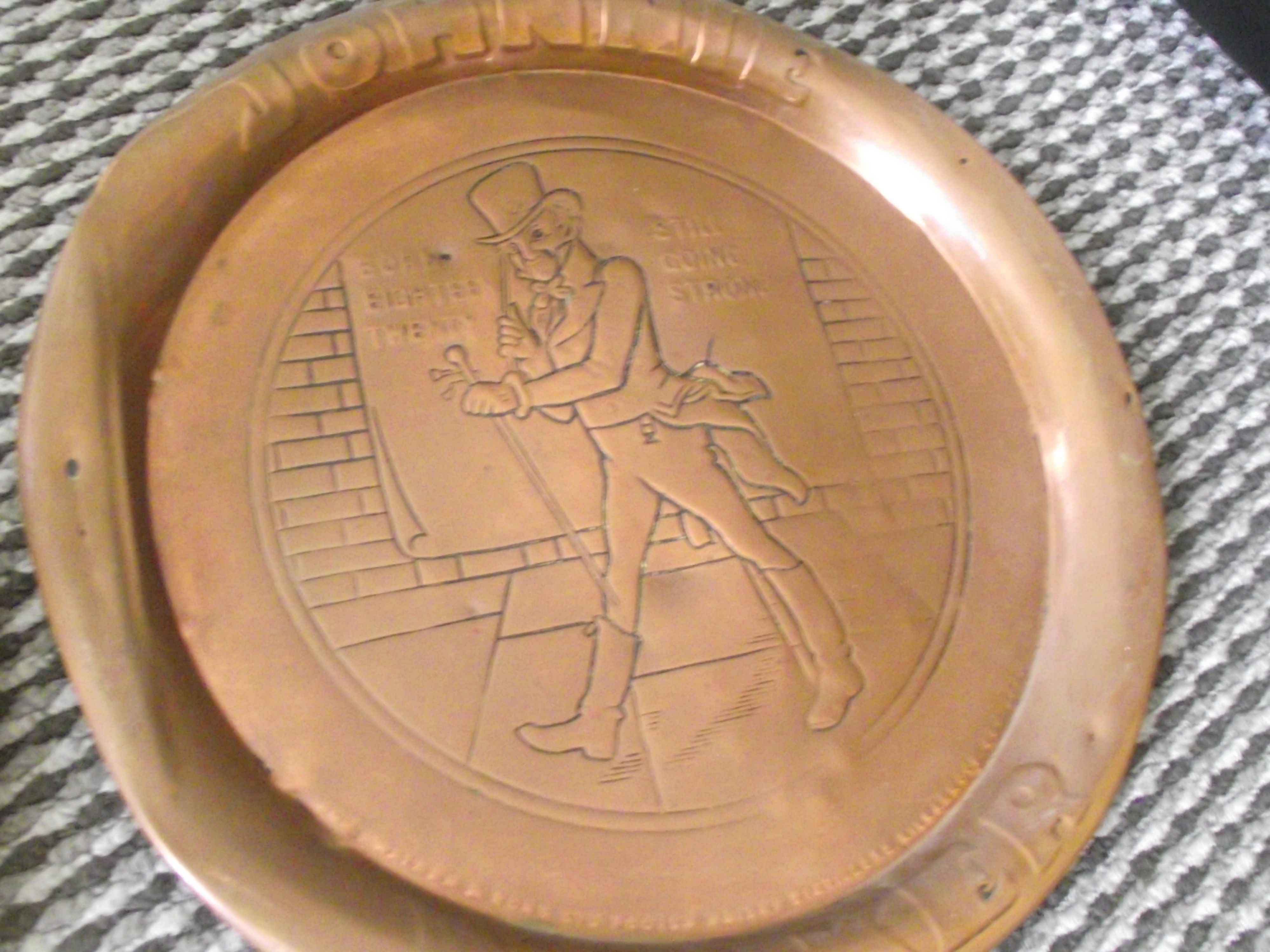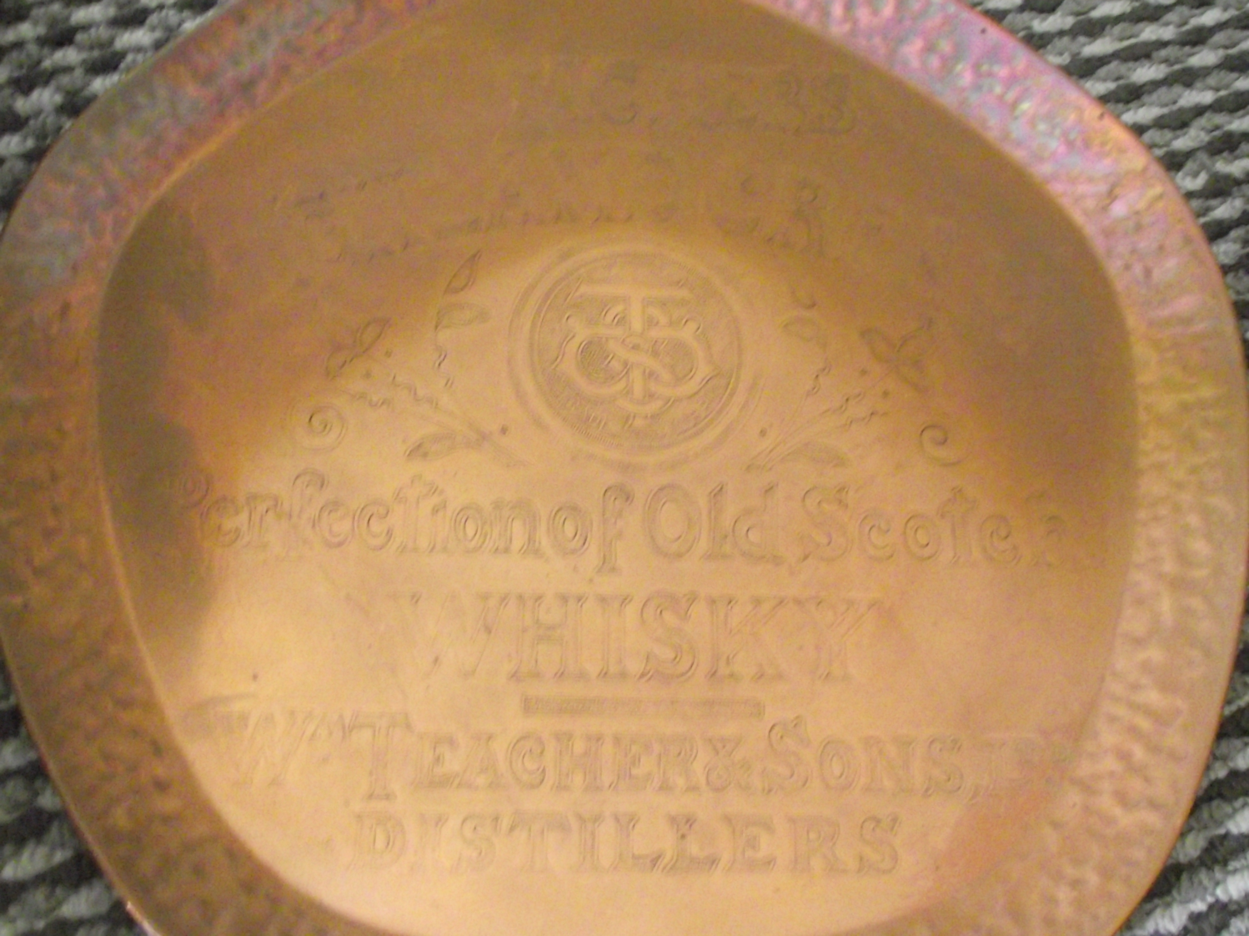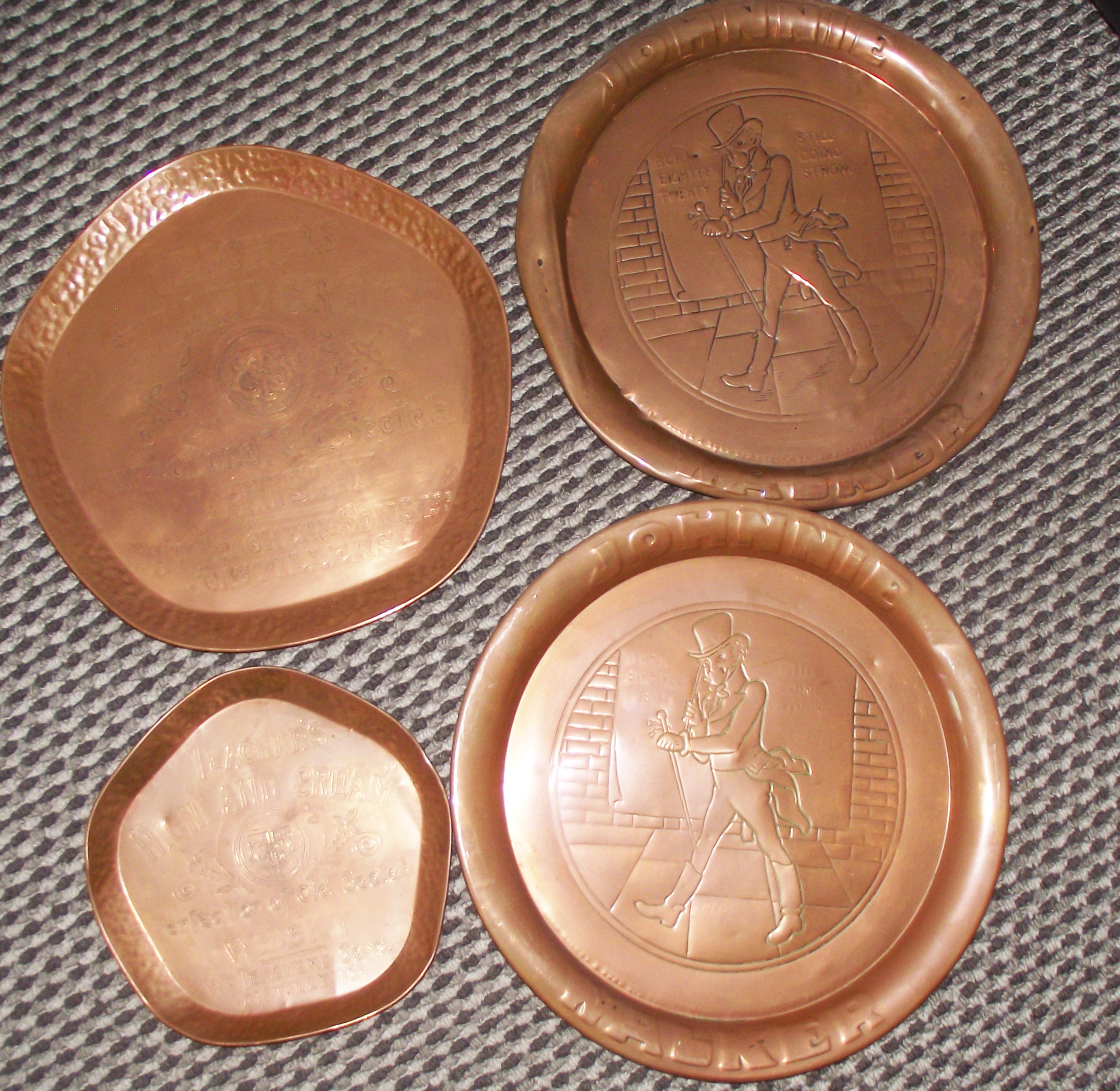 2 x Rare Teachers Highland Cream Scotch Whisky Copper Advertising Trays + 2 x Johnnie Walker scotch whiskey advertising copper tray