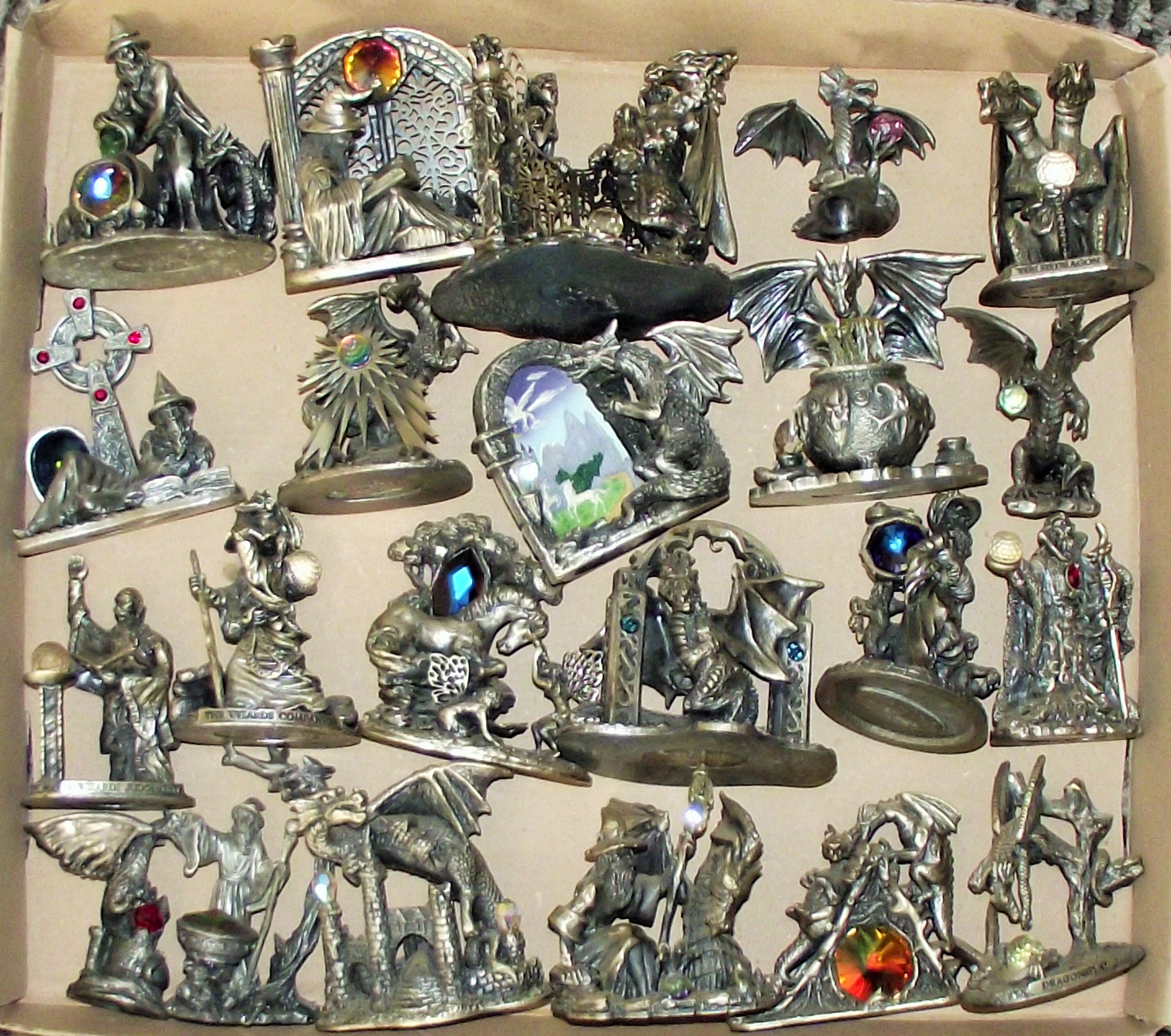 23 x tudor mint pewter mythical fairy dragon wizard collectors pieces by various mkers inc Mark locker,AG slocombe , SC riley etc