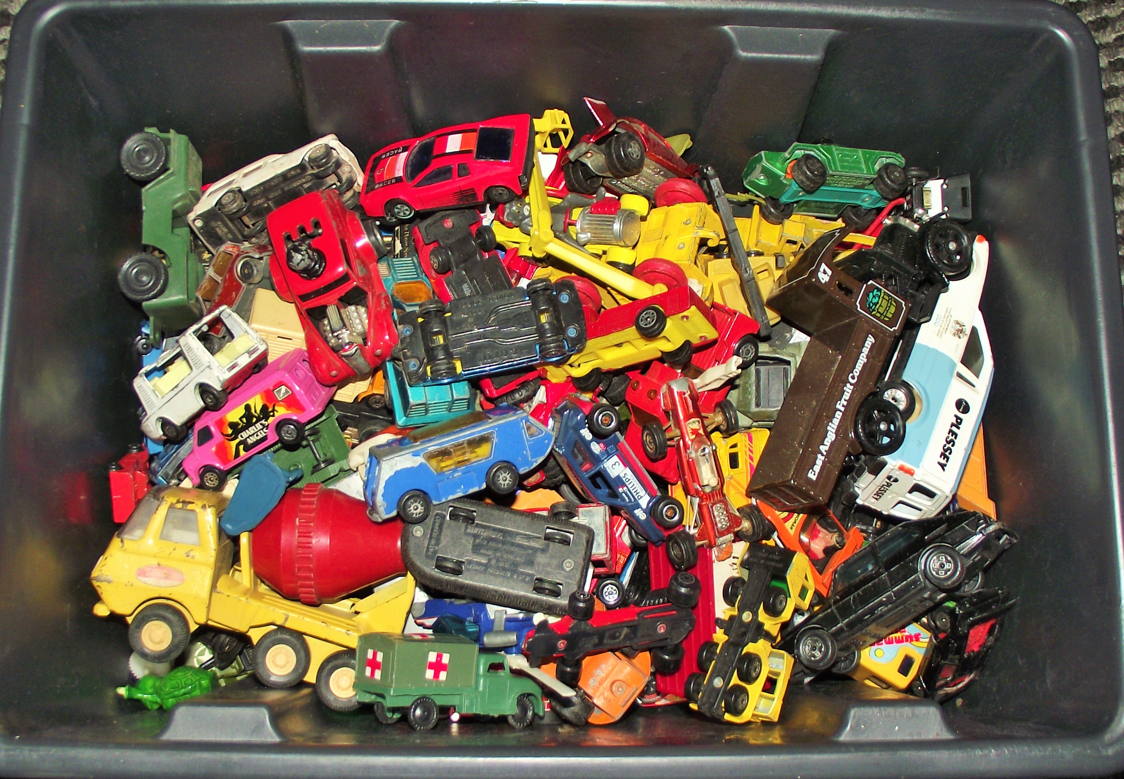 Good box of mixed die cast car and lorry toys lesney ,Matchbox etc